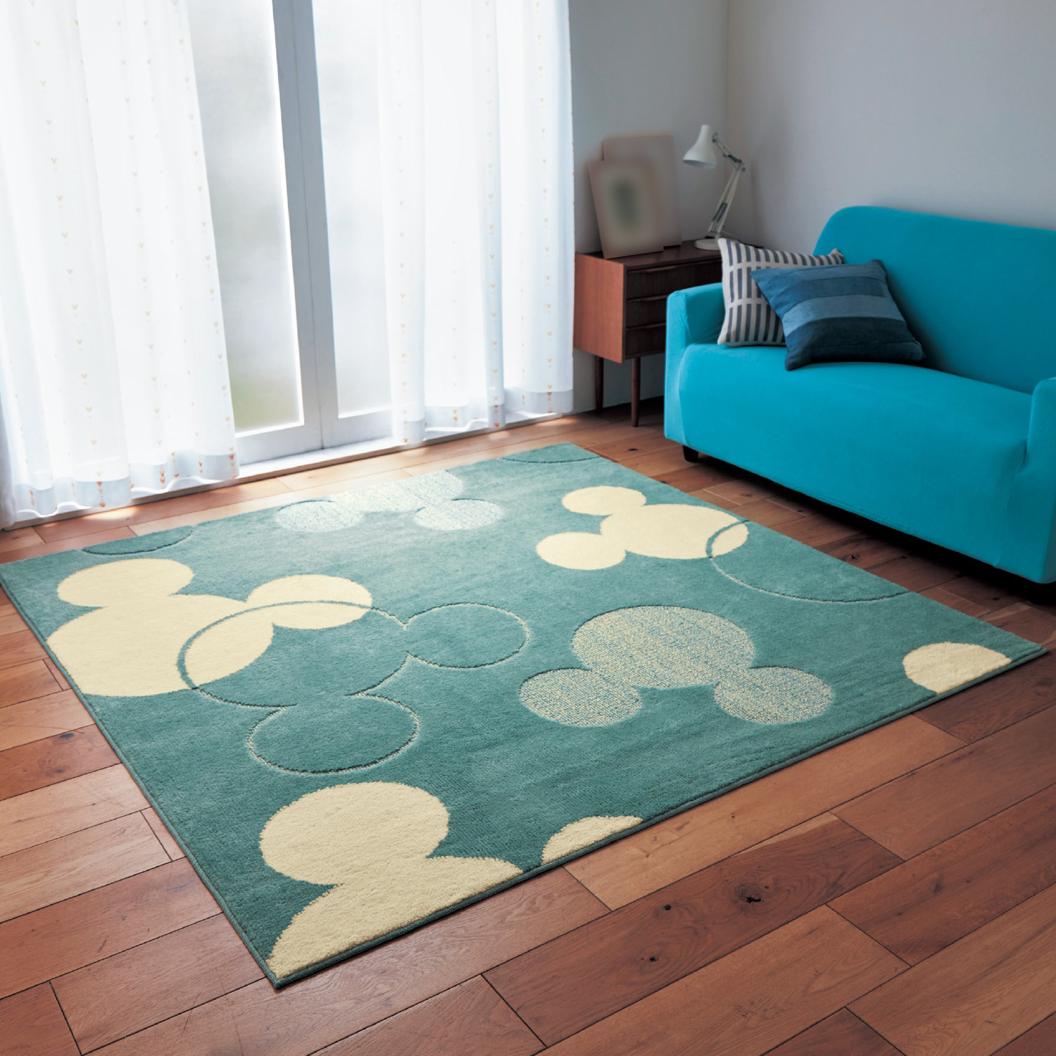 洗える防ダニ加工ラグ「ミッキーモチーフ」
