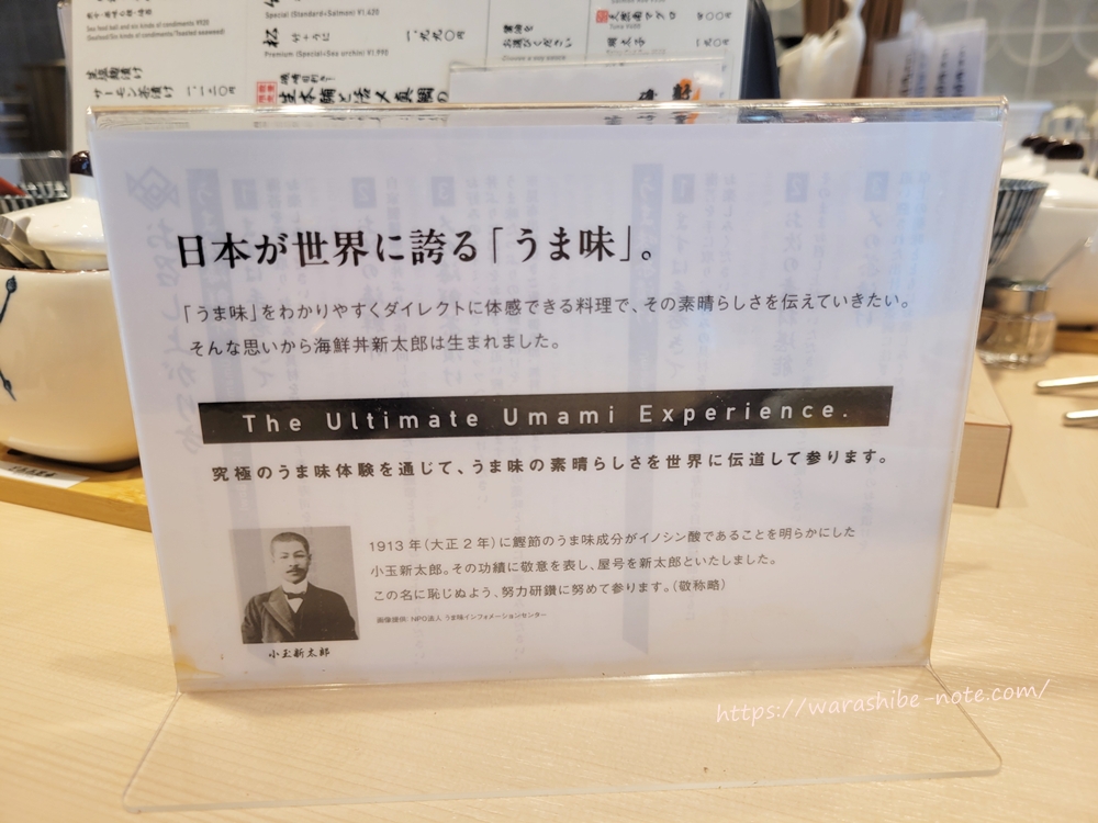 海鮮をほぼ食べ終わったら、お茶漬けに味変してもらうため、声をかけて丼ぶりを手渡します。